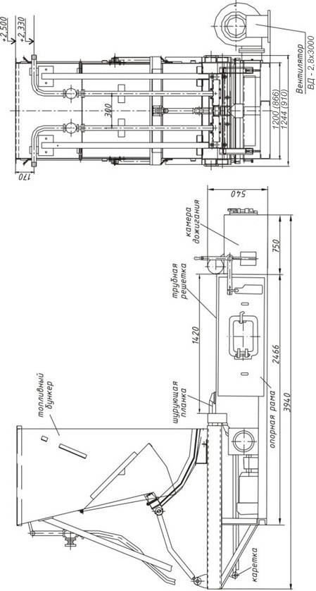 Топка ТШПМ-2.0 состоит из бункера для хранения топлива с шурующей планкой, неподвижной колосниковой решетки, установленной на раме и, собственно, корпуса топки из жаропрочной стали. При помощи шурующей планки топливо из бункера поступает на колосниковую решетку. Планка распределяет куски топлива по поверхности решетки и начинается процесс горения. Для более интенсивного горения и полноценного расхода топлива в системе предусмотрены вентиляторы, которые обеспечивают дополнительный приток воздуха в топку, снизу, через отверстия решетки. В рабочем состоянии топка поддерживает температуру решетки и шурующей планки, охлаждая их при помощи системы трубопровода.